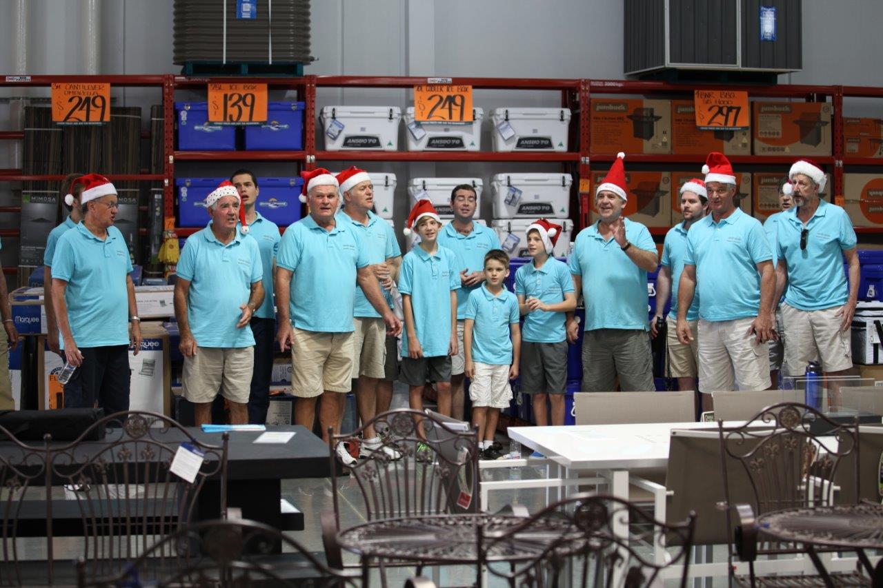 With the car park already full at 10:30 parking was at a premium when the members arrived ready to sing for Bunnings Oxenford Christmas shoppers. Wondering though the store singing a variety of Christmas songs old and new, with shoppers tapping toes and singing along, the Christmas cheer was well and truly spread. Wishing all of Bunnings Oxenford customers and staff a Happy Holiday season.